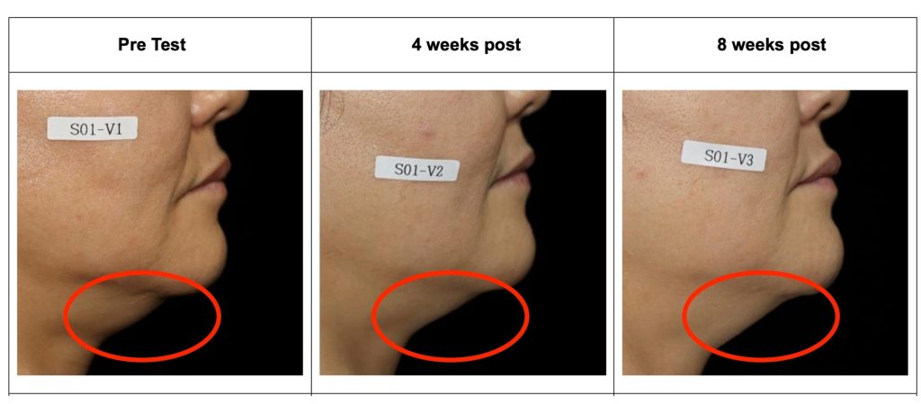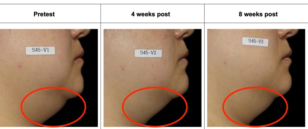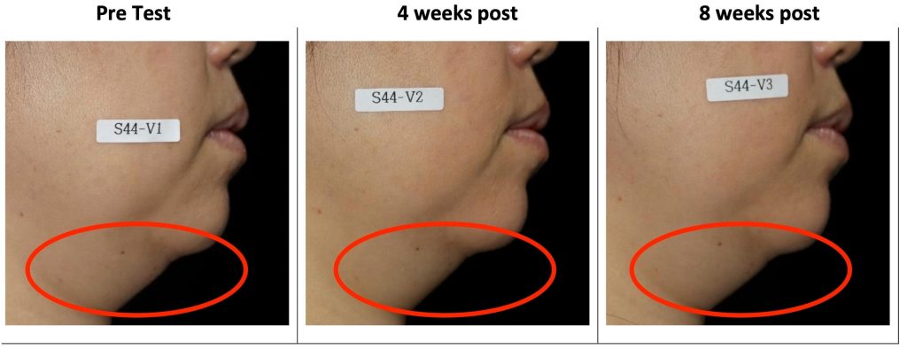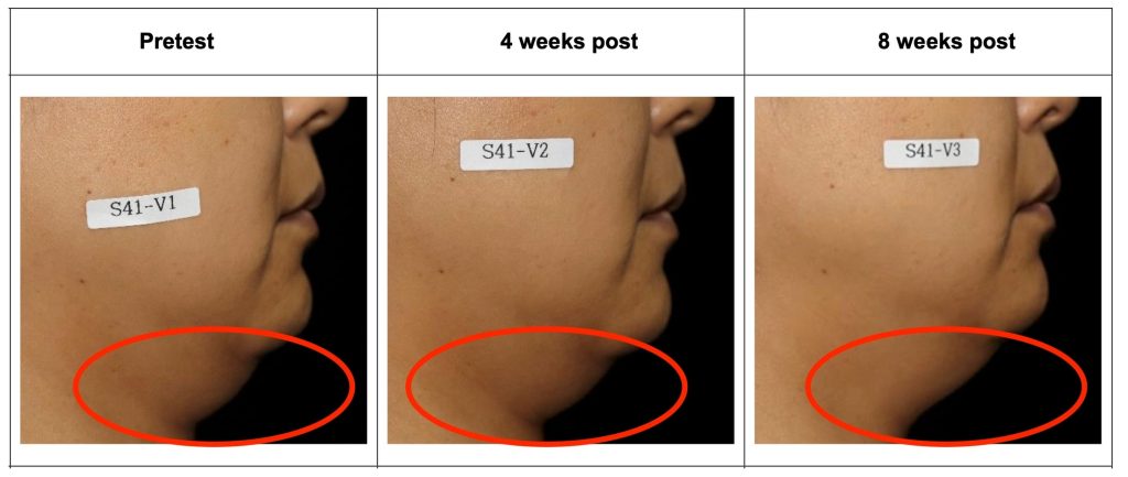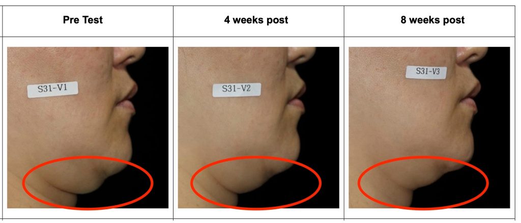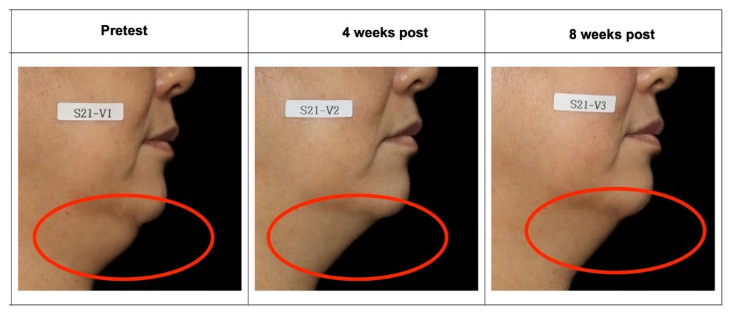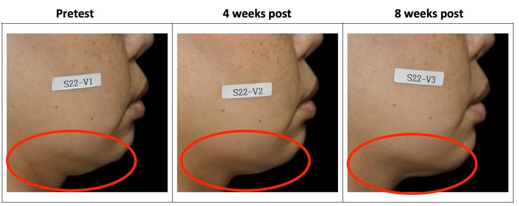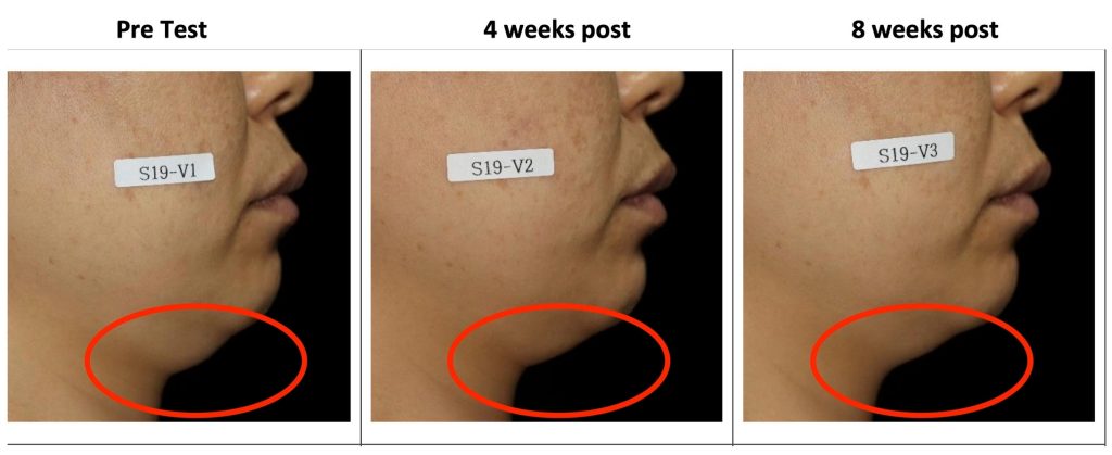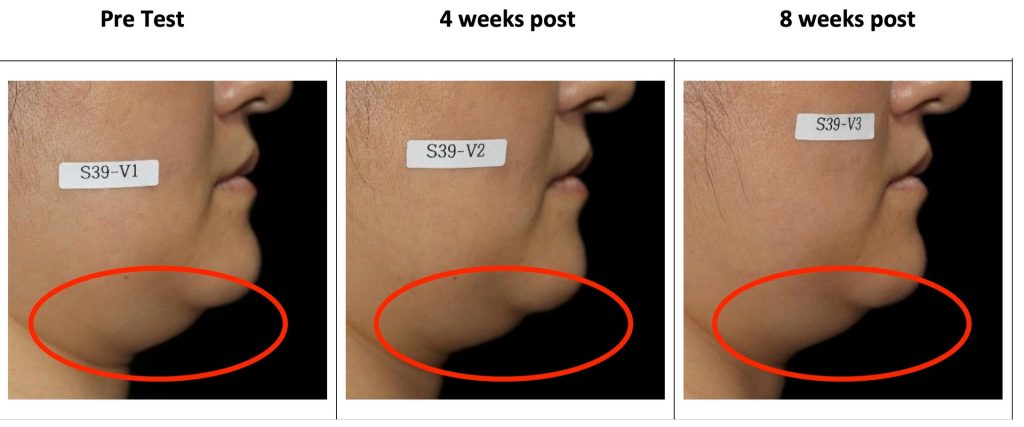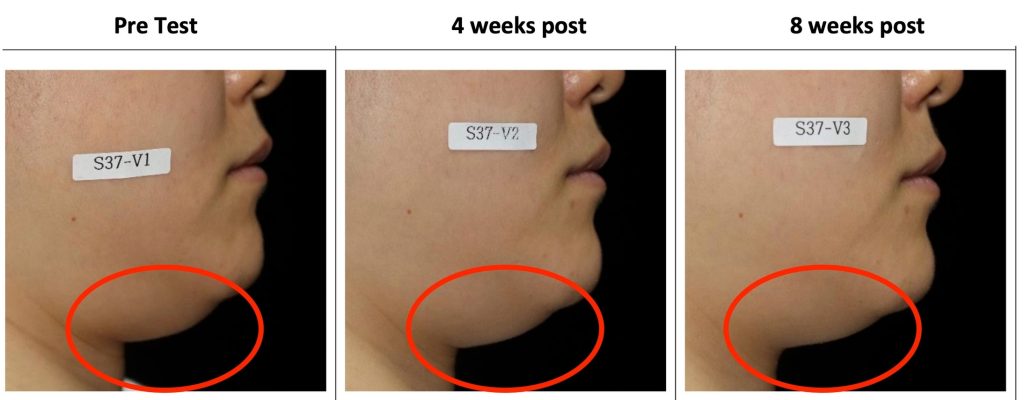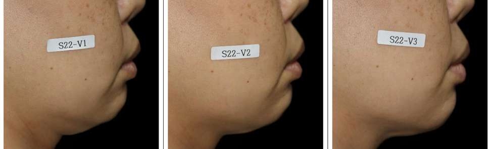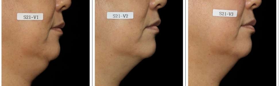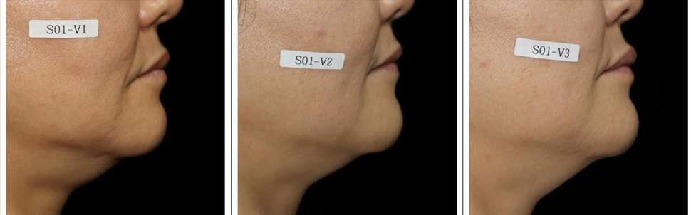 SHOWING A CLEAR IMPROVEMENT OF A DOUBLE CHIN AND DROOPING OF THE JAWLINE.