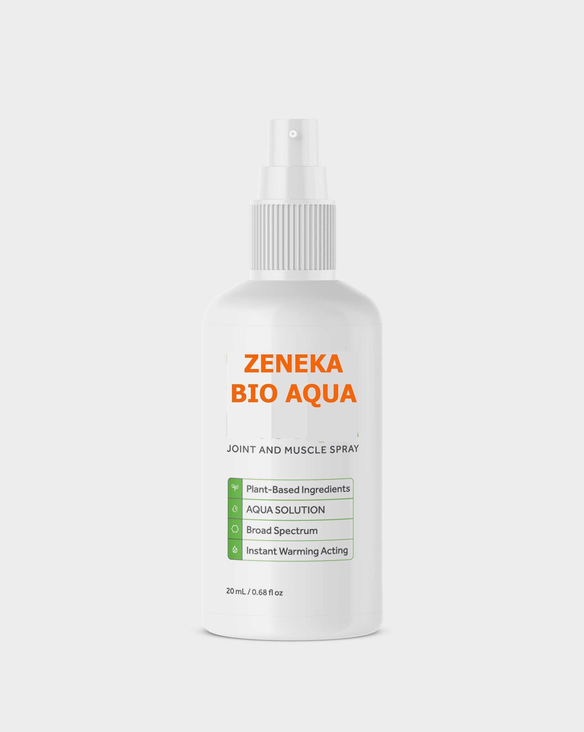 ZENEKA’s BIO AQUA best-selling Joint & Muscle Spray with plant-based ingredients was formulated for penetrating absorption and fast, temporary relief from joint pain and muscle aches. Custom formulated to offer a mess-free water based and targeted solution.